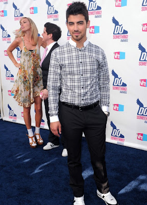Joe Jonas plays up the plaid with bright white sneakers as he arrives at the 2010 VH1 Do Something! Awards held at the Hollywood Palladium.